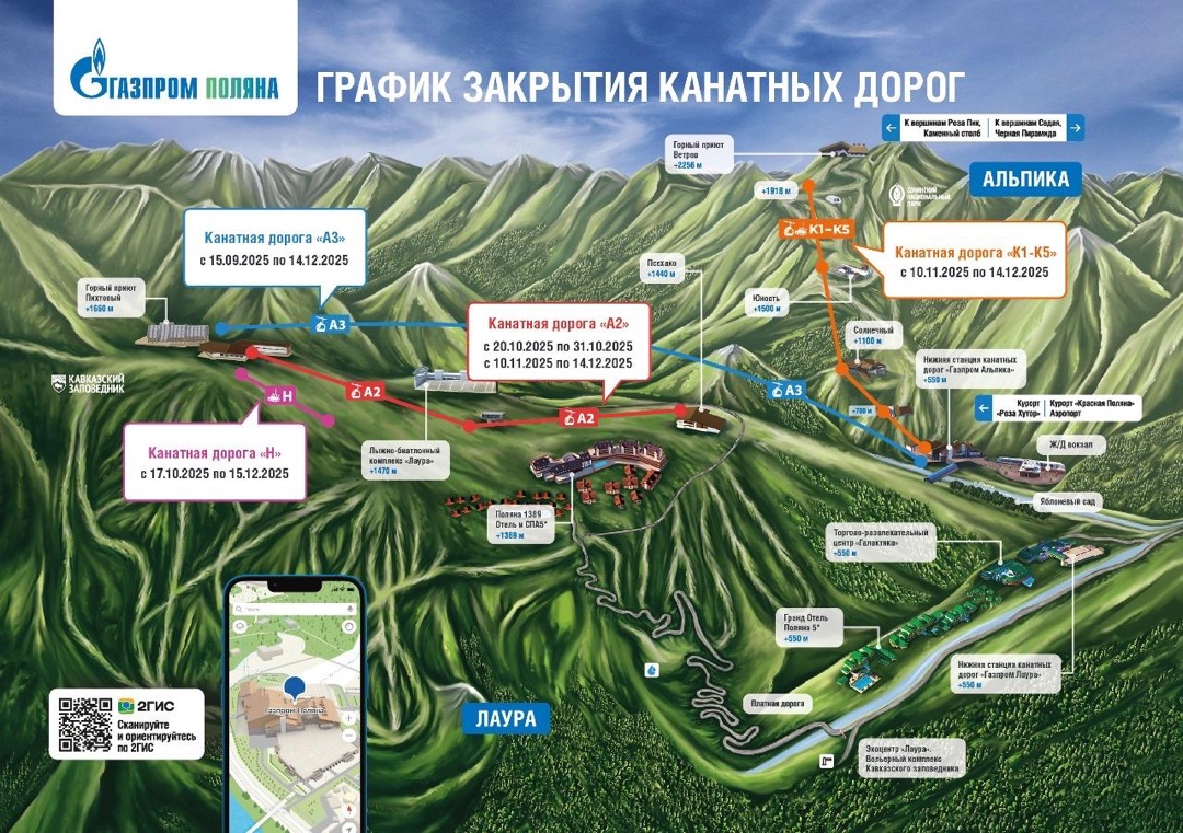 Уведомляем Вас, об изменении графика работы канатных дорог на Курорте «Газпром Поляна»: